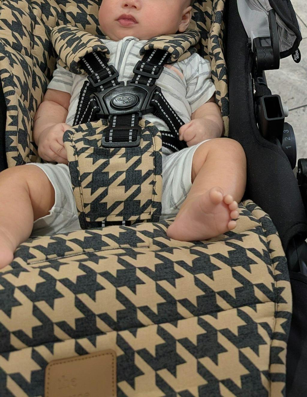 Black Houndstooth Linen Pram Harness Cover Set